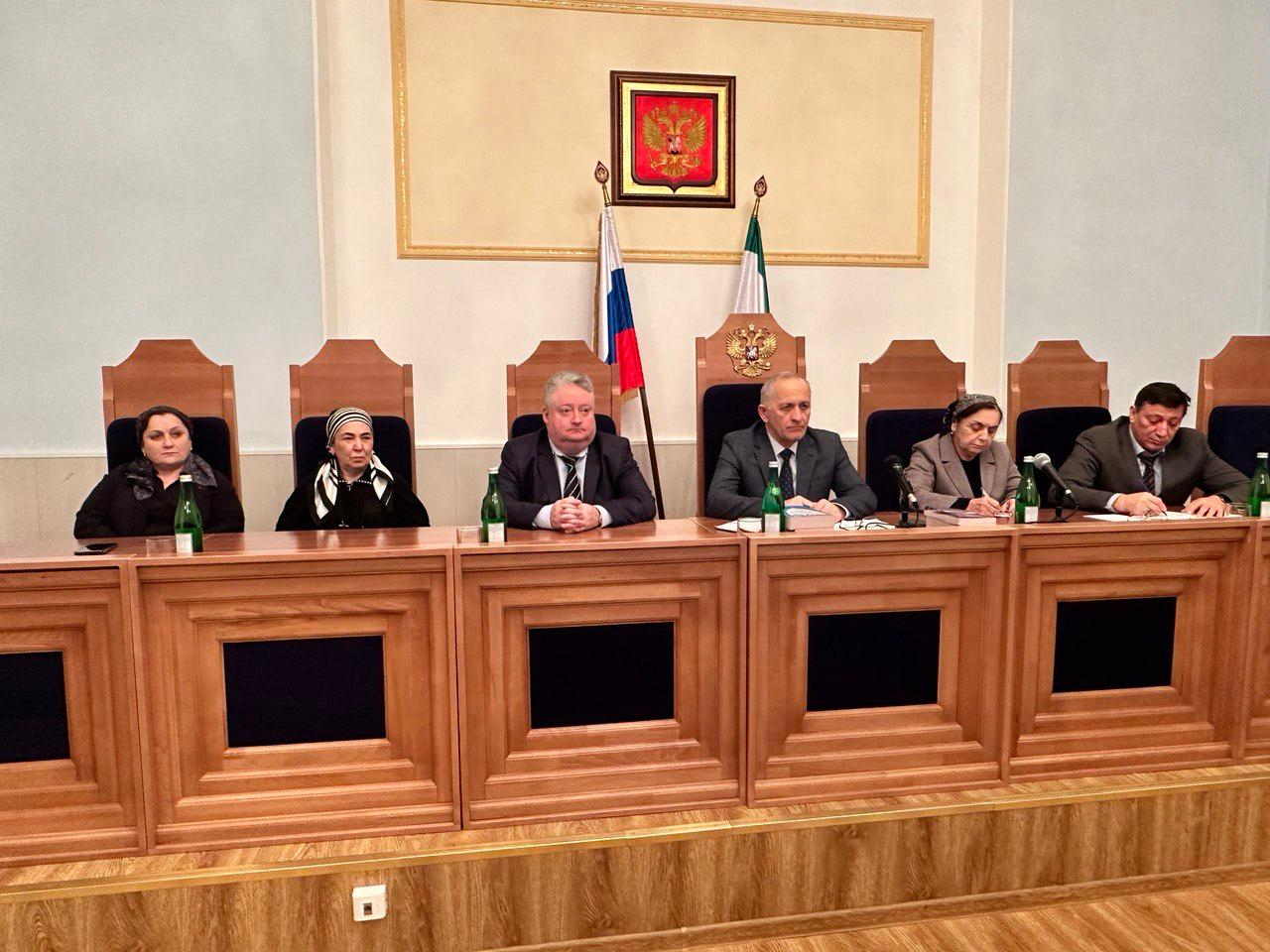 | Суды общей юрисдикции Республики Ингушетия приняли участие в совещании Верховного Суда Российской Федерации по актуальным вопросам судебной практики по трудовым и семейным делам | версия для печати |